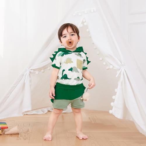 • Feature: Cute Baby Boy Outfit Summer Clothing Set Little boy’s clothes, Loose fit; Tops with hood, short sleeve, chest pocket, dinosaur print; contrast color. Toddler Baby Boy Summer Outfit Short Sleeve Animal PrintCasual Shorts Set Cute Kids Clothes