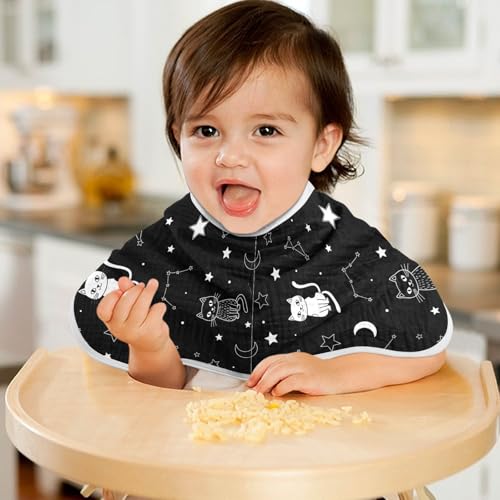 J JOYSAY Galaxy Cats Black Baby Burp Cloths for Boys Girls Large 22''x11'' Cotton 4 Layer Milk Spit Up Rags for Infant Newborn one sizex4 7
