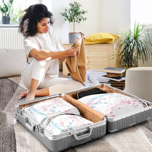 Pink Blue Cherry Blossom 3 Piecing Packing Travel Bag Garment Bag Closet Storage Blanket Storage Bags Plastic Storage 4