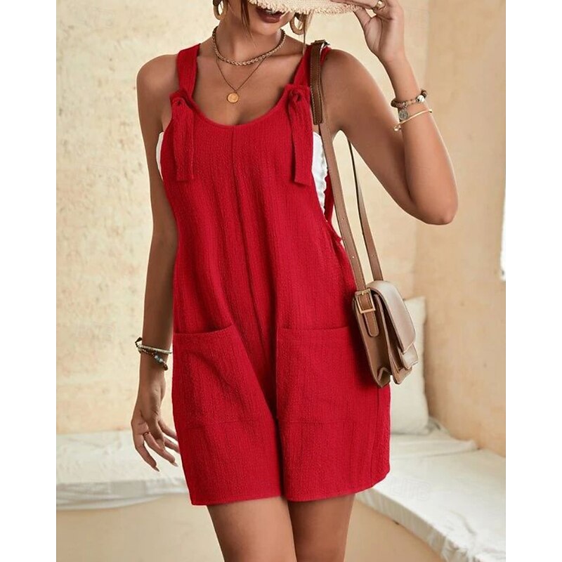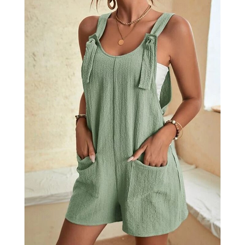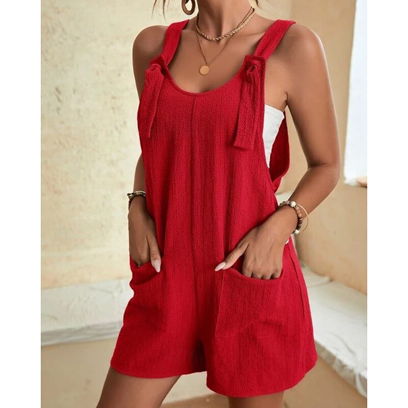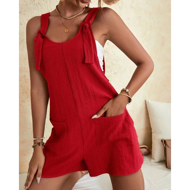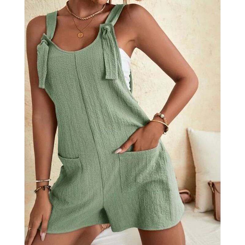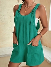 More information about Women's Normal Romper Streetwear Solid Color Sleeveless U Neck Pocket Street Holiday Regular Fit Black Pink Army Green Summer