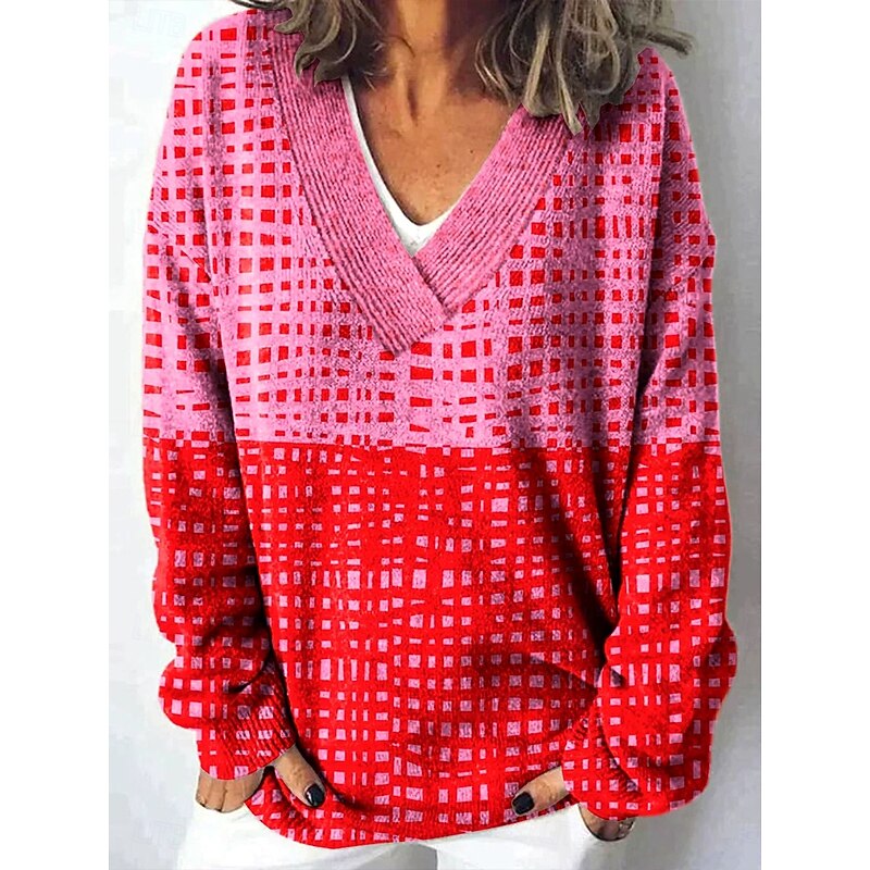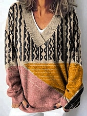 Highlights - Embrace a casual and stylish look with this geometric and color block cardigan - Loose fit design provides a comfortable and relaxed feel - Features a trendy V neckline and unique print for added flair