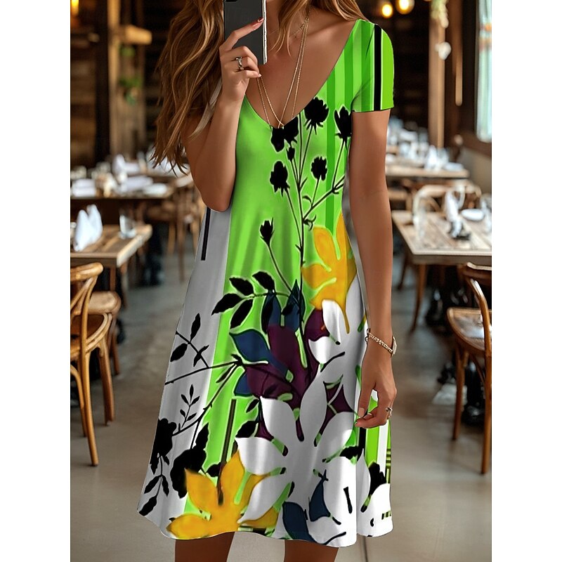 More information about Women's Mini Dress T Shirt Dress Tee Dress Sundress Summer Dress Vacation Casual Beach Daily Going out Regular Fit Floral Graphic Geometric Short Sleeve V Neck Yellow Blue Purple Orange Summer