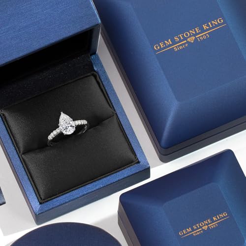 HOT ! Gem Stone King 10K White Gold 8X5MM Pear Shape Gemstone Birthstone and Lab Grown Diamond Engagement Ring For Women | Wedding Anniversary Promise Gold Ring | Available in Size 5 to 9