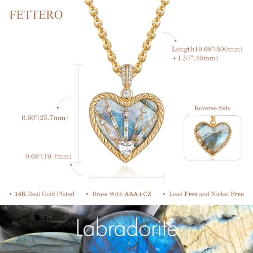More information about Fettero Gold Necklace for Women, 14K Gold Plated Heart Charm Necklaces for Women Double Sided Pendant Heart Necklace for Mom Wife Valentines' Day Jewelry
