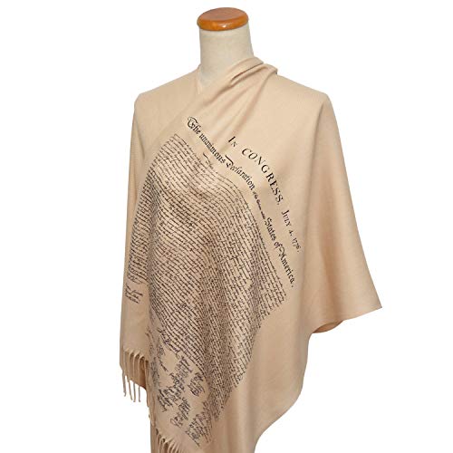 • "IN CONGRESS, JULY 4, 1776 The unanimous Declaration of the thirteen united States of America" printed on soft , beige colored shawl.