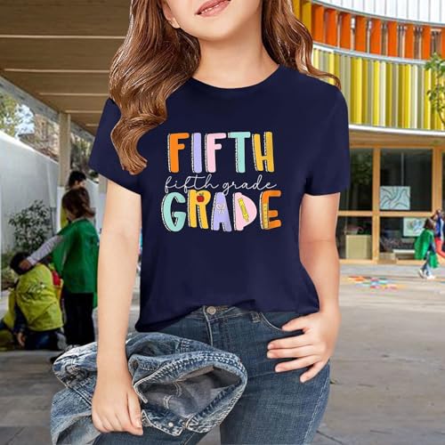 HOT ! First Day of Fifth Grade Kids Back to School T-Shirt Girls Boys Short Sleeve Outfits for Kindergarten Preschool