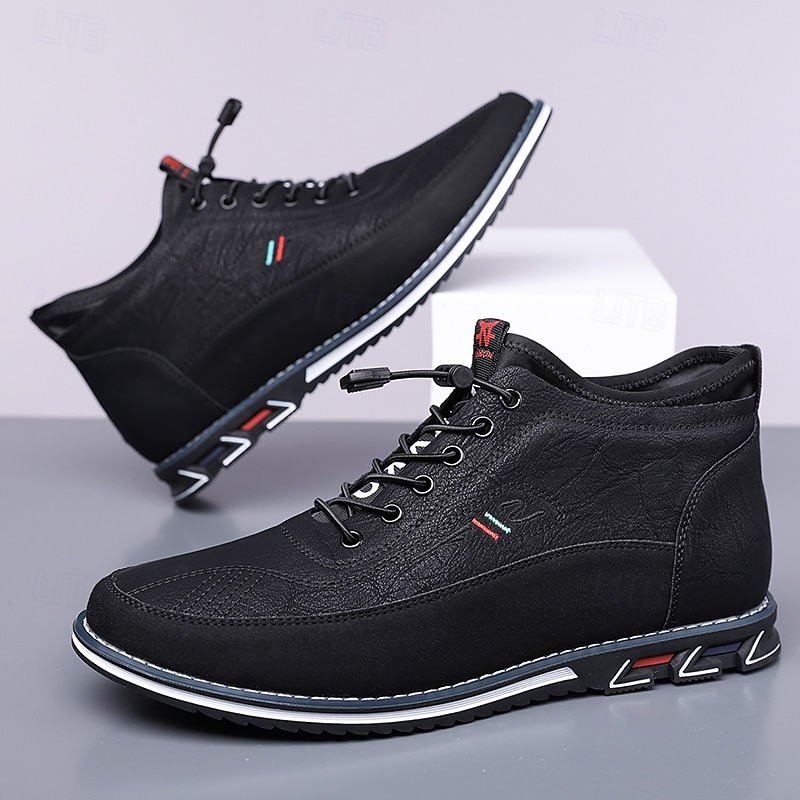 HOT ! Men's Brown High-Top Walking Sneakers – Lace-Up Comfort Shoes for Plus Size Feet, Travel and Long-Distance Walking