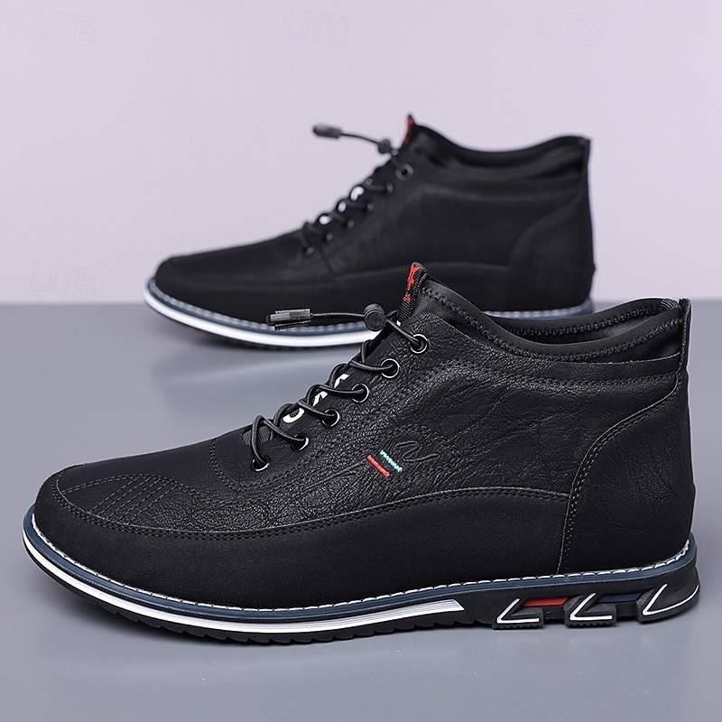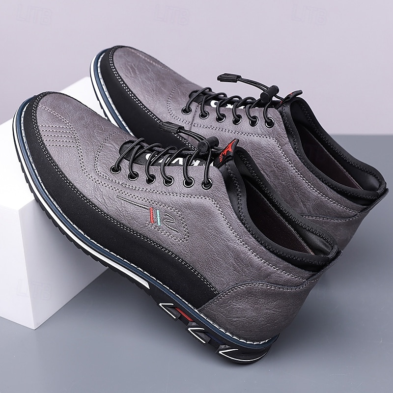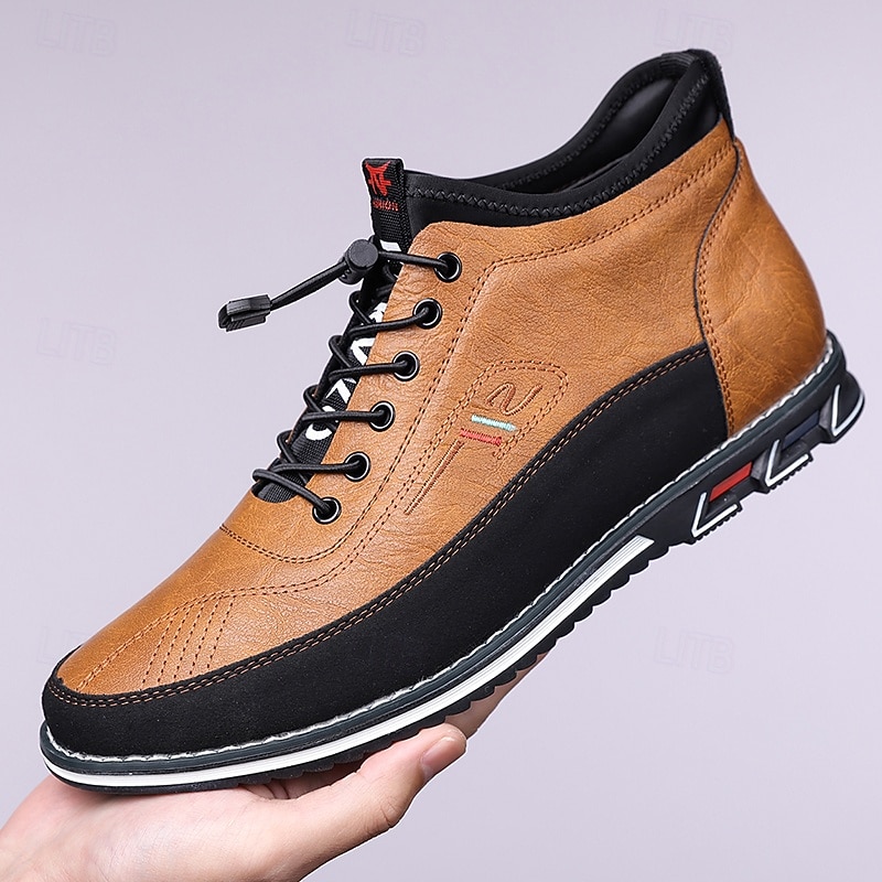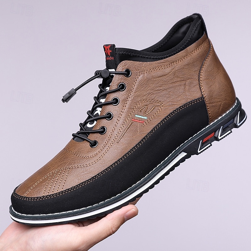 Men's Brown High-Top Walking Sneakers – Lace-Up Comfort Shoes for Plus Size Feet, Travel and Long-Distance Walking 35