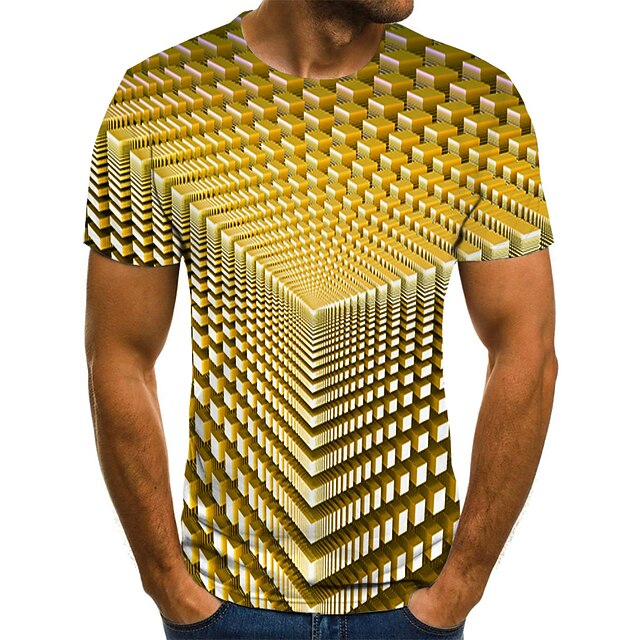 More information about Men's Graphic Geometric 3D Shirt T Shirt Tee Short Sleeve T shirt Round Neck Shirt Streetwear Exaggerated Designer Holiday Going out Light Green Pink Royal Blue Clothing Apparel Plus Size S M L XL