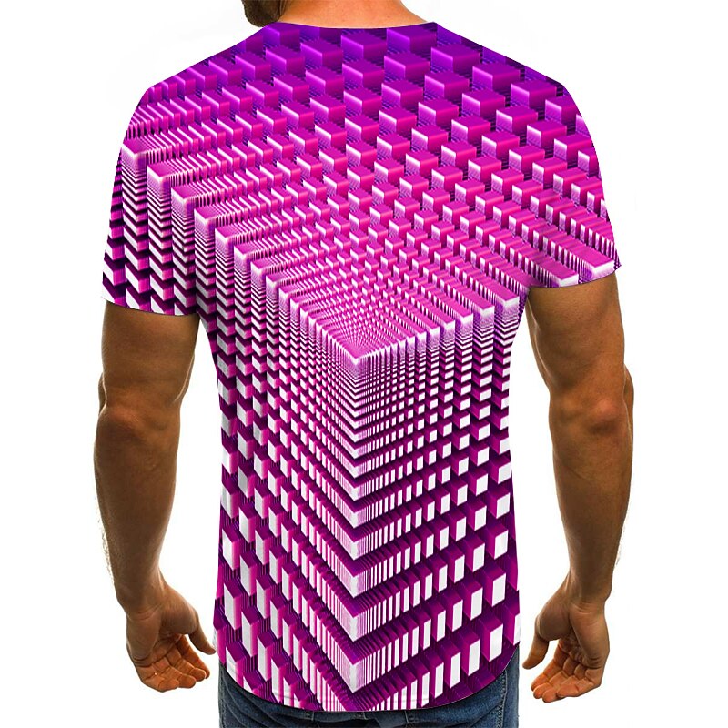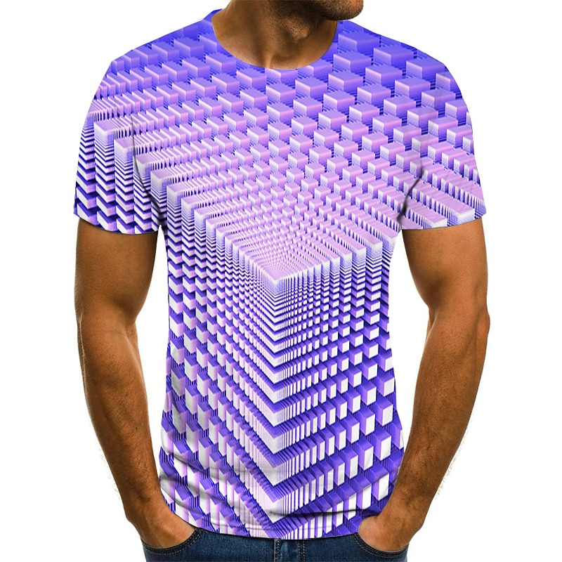 Highlights [Fabric] : Crafted from high-quality polyester, this men's T-shirt ensures lasting comfort and durability with its inelastic nature. The lightweight material makes it suitable for all-day wear in various weather conditions. [Fit] : Featuring a regular fit, this shirt offers a classic silhouette with a round neck and short sleeves. It’s designed to complement a range of body types, making it an excellent choice for daily wear. [Design Highlights] : The shirt stands out with its striking 3D geometric graphic print. The intricate pattern in shades of purple and white creates an eye-catching optical illusion, perfect for those who want to make a bold fashion statement. [Occasions] : Ideal to wear on holidays or while going out, this T-shirt is versatile enough to suit a variety of occasions. Whether you're dressing up for a casual day out or just hanging out with friends, it effortlessly elevates your streetwear wardrobe. [Size Range] : Available in a wide range of sizes from S to 5XL, this T-shirt caters to a broad audience, ensuring the perfect fit for different body shapes and preferences.