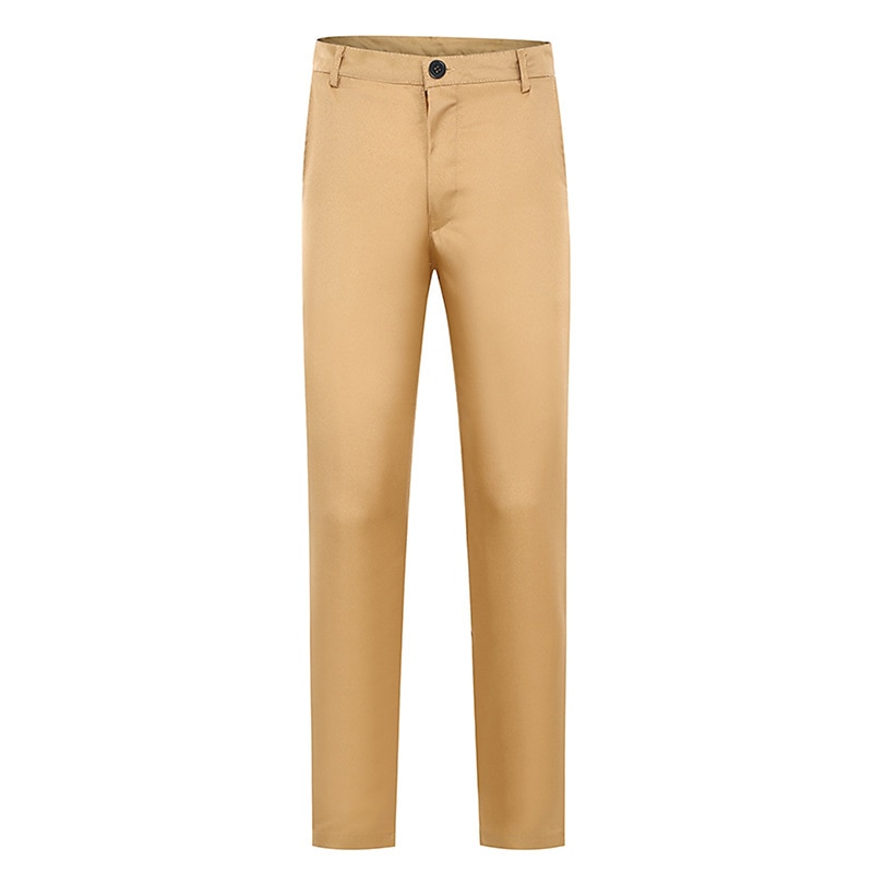 Highlights [Fabric] Crafted from high-quality polyester, these men's trousers offer breathability and comfort, making them ideal for spring and summer wear. The fabric's slightly glossy finish adds a touch of sophistication while ensuring a soft feel against the skin. [Style & Fit] Featuring a regular fit and a straight-leg cut, these trousers are designed to provide a flattering silhouette that suits various body types. The mid-rise waist with belt loops allows for versatile styling, accommodating both formal and casual occasions effortlessly. [Design Highlights] The trousers are equipped with practical pockets, perfect for carrying essentials with ease. The secure button closure and zipper fly add functionality, making them easy to wear. Available in a plain pattern, the design blends simplicity with elegance. [Occasions] Suitable for daily wear, outings, and outdoor activities, these trousers seamlessly transition from casual gatherings to fashion-forward events. Their classic and versatile appearance makes them a reliable choice for various settings. [Size Range] Available in sizes XL, 2XL, 3XL, 4XL, and 5XL, these trousers cater to a wide range of body sizes, ensuring a comfortable and stylish fit for all.