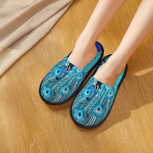 • Beautiful Blue Peacock Pattern Slippers: The Upper Of This Slipper Is Made Of High-Quality Soft Plush Fabric,And The Sole Is Made Of Eva Material,Which Is Light,Wear-Resistant And Soft,Not Only Warm,But Also Very Comfortable To Wear. Easy To Clean And Easy To Carry,It Is A Must-Have For Business Trips,Travel,And Outings
