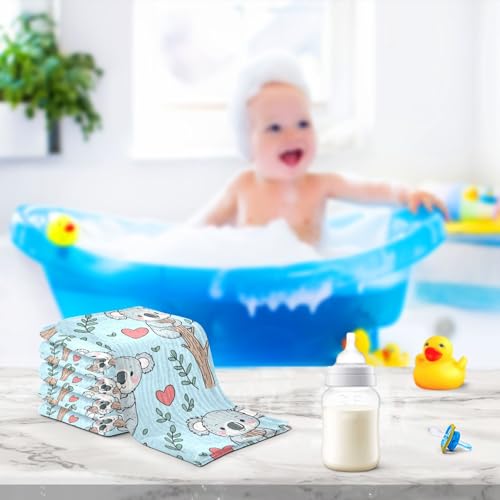 vvfelixl Baby Muslin Washcloths Cute Koala Climb Baby Burp Cloths Cotton Babys Face Towel for Newborn Infants Boys Girls gentle and Absorbent 11.8 X 11.8 in, 3 Pack