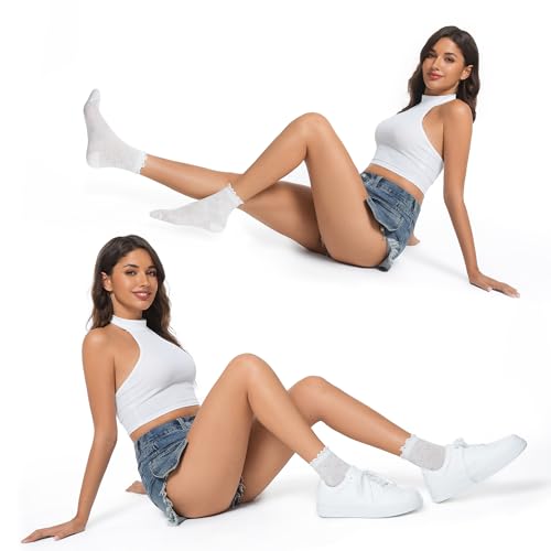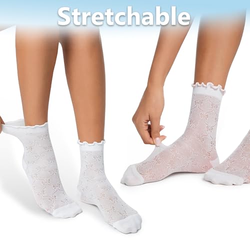 Women's Ruffle Socks,Cute sheer Thin Cotton Sock, Friily Cuff,Cool Lace Elegant Socks,Girl's Sock 6 Pack (Size5-9) 4