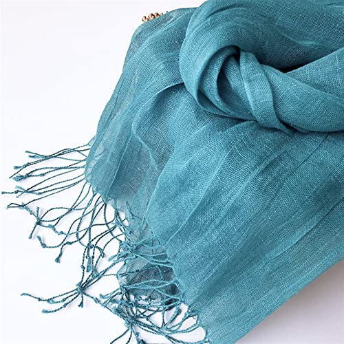 2 Pcs Linen Scarf Shawl for Women Solid Color Long Scarves Light Fashion Neckerchief Shawl, L21.7 X W70.9 (Color : Lake Blue+Dark Green, Size : 55x180cm) 5