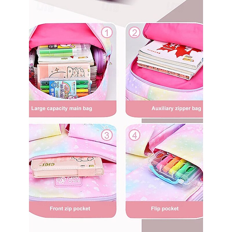Kid's Waterproof Rainbow Galaxy Backpack – Large Capacity School Bag with Multiple Pockets for Girls, Lightweight Bookbag for Elementary & Middle School 11