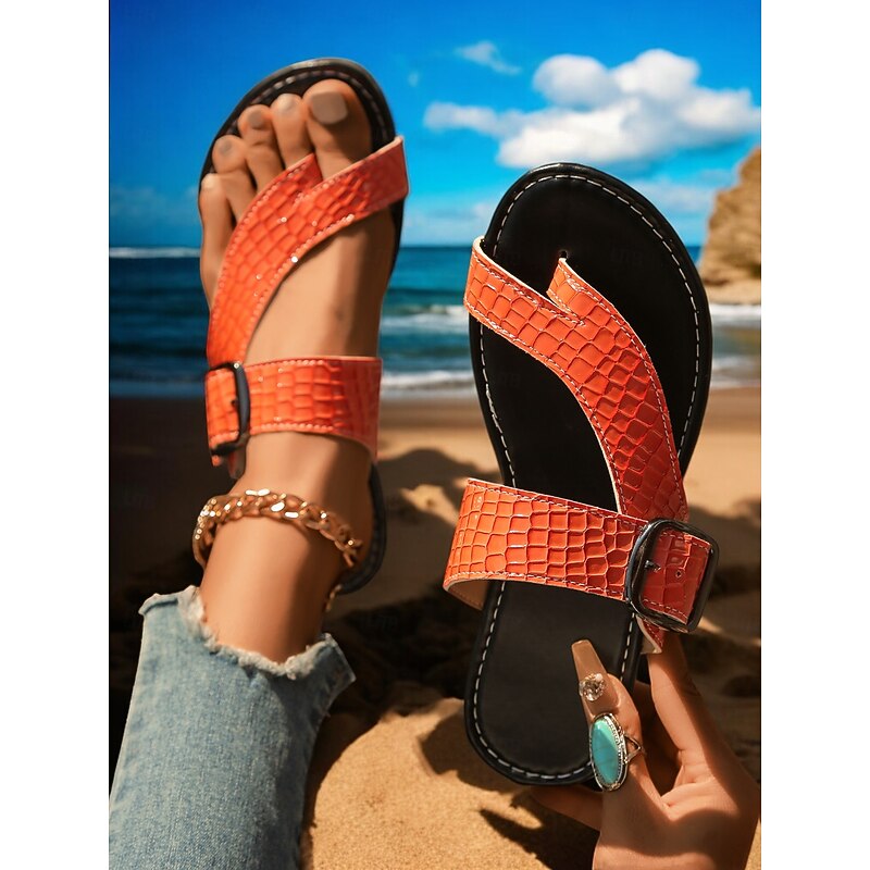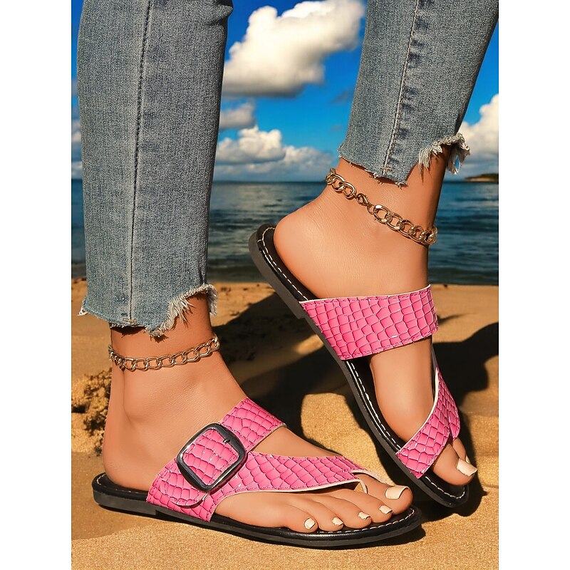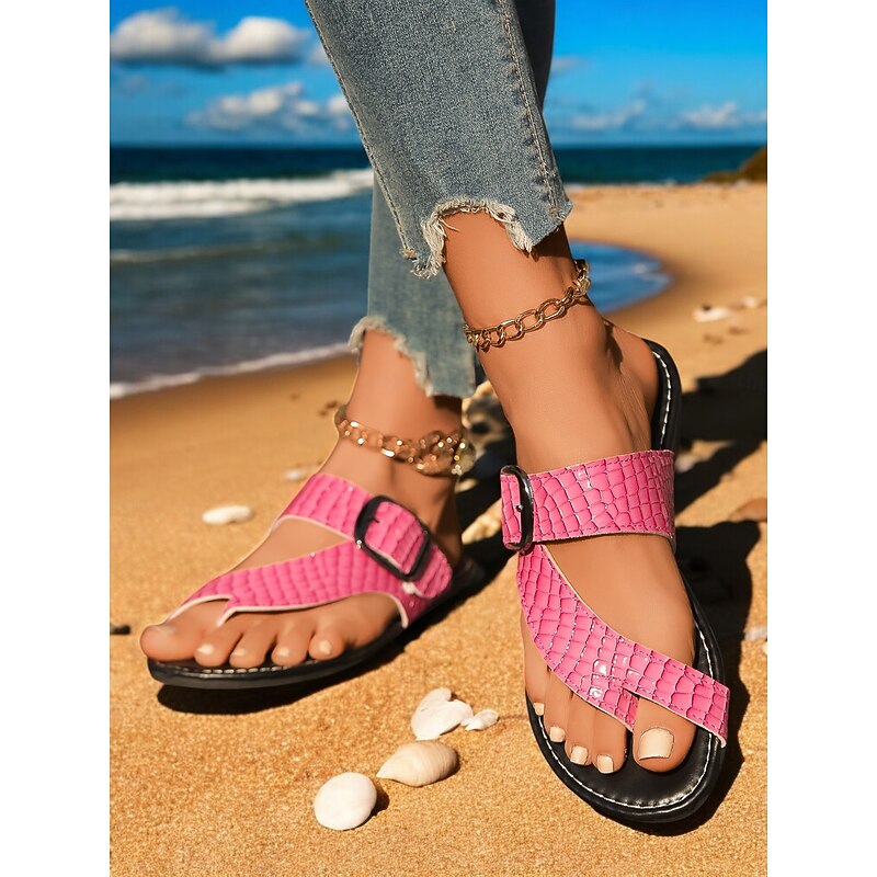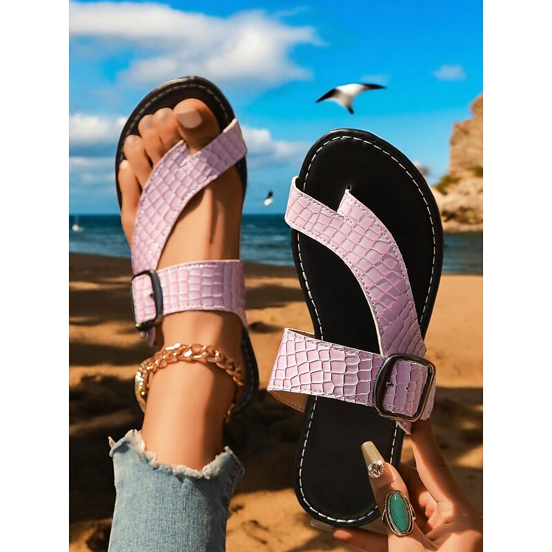 HOT ! Women's Trendy Green Croc - Embossed Sandals – Double - Strap, Thong - Style Footwear for Women's Beach Outings, Summer Walks and Casual Gatherings