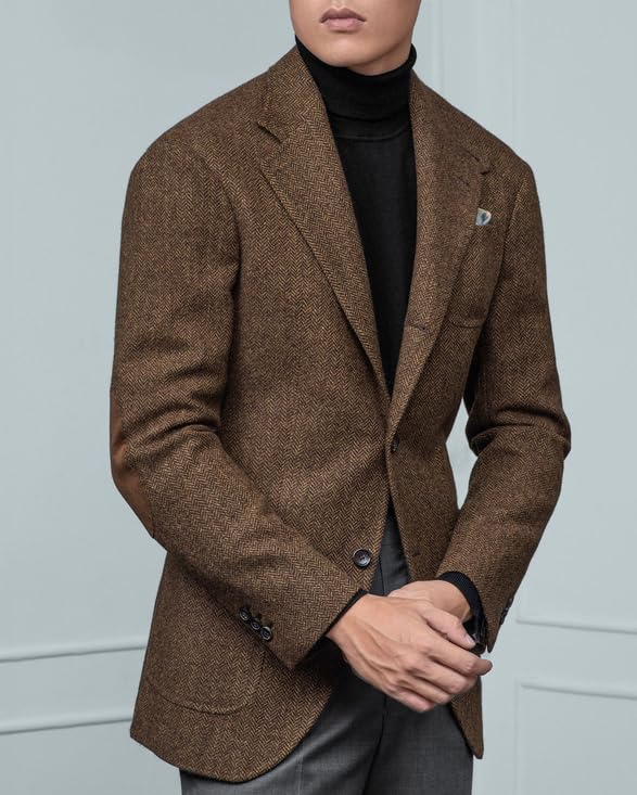 Mens Blazer Vintage Herringbone Business Hunting Jackets Winter Tweed Blend Retro Coats 1