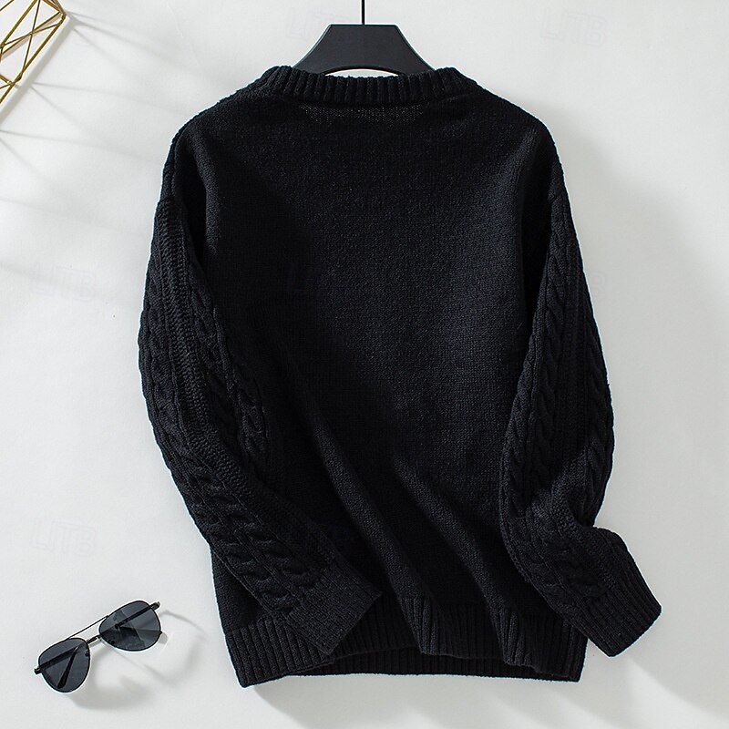 The classic cable-knit design adds a textured, elegant touch to this versatile piece. With its solid color options—black, beige, and gray—the sweater offers a sophisticated, minimalistic look suitable for any occasion.