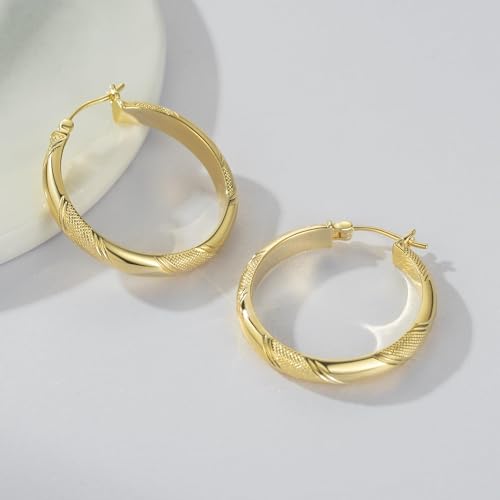 • 【Light-refracting Design】The alternate pattern of dot carvings and smooth surfaces isn't just about aesthetics. As you move, the 14k gold earrings for women’s hoop earrings capture and refract light in mesmerizing patterns, ensuring you shine wherever you go. These large hoops earrings for women not just a visual delight but also a joy to touch and feel.