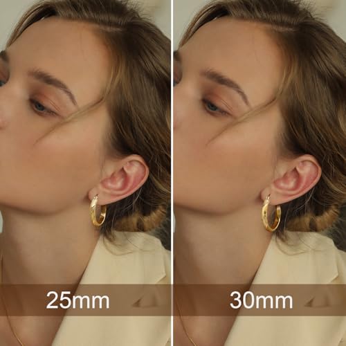 Gold Hoop Earrings 14K Gold Hoops Earrings For Women Large Thick Women’s Hoop Earring for Women Modern Elegance 25/30MM 4