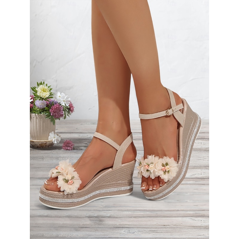 Women's Floral Embellished Wedge Sandals – Open-Toe Ankle Strap Platform Sandals for Summer, Beach & Wedding Wear 20