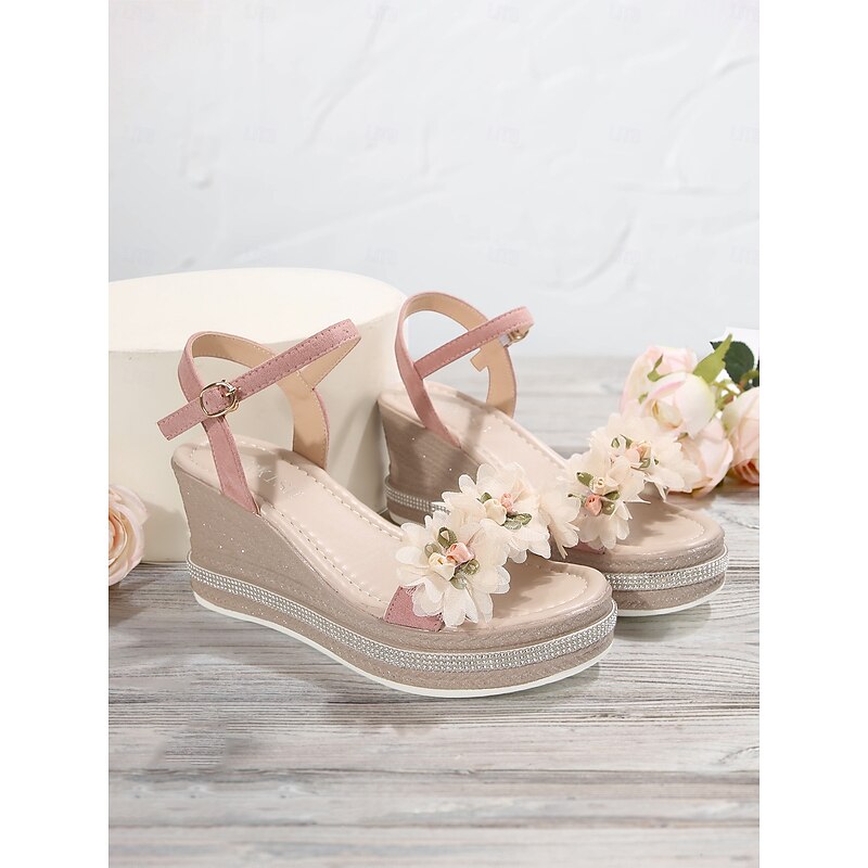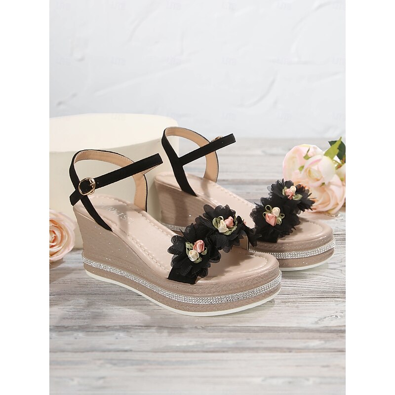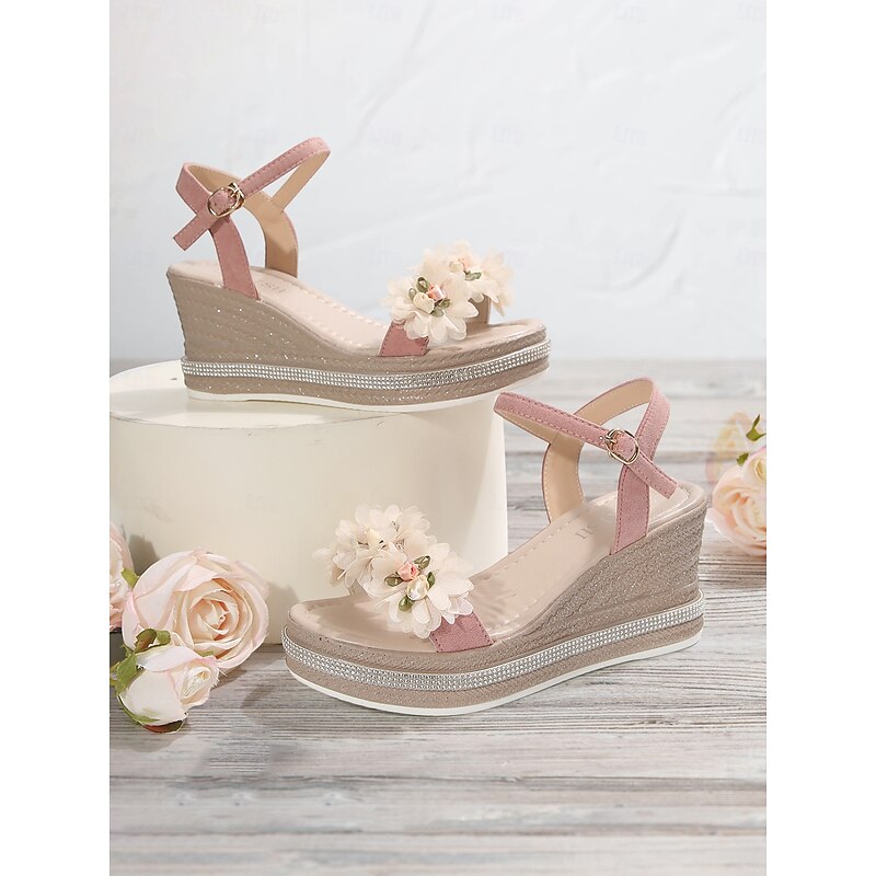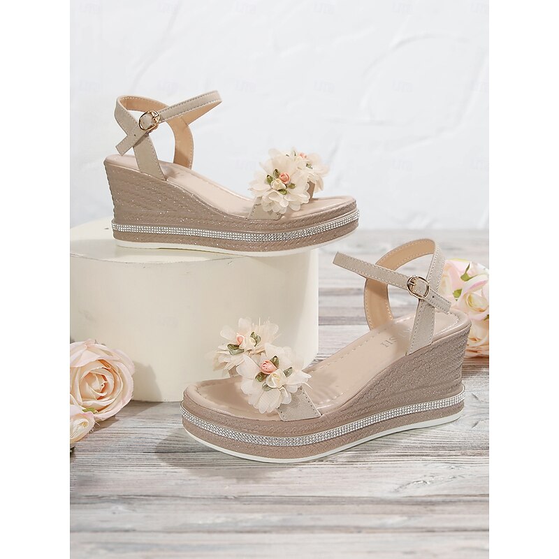 HOT ! Women's Floral Embellished Wedge Sandals – Open-Toe Ankle Strap Platform Sandals for Summer, Beach & Wedding Wear