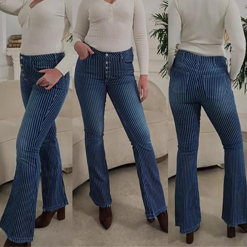 HOT ! Andongnywell Women's Flare Denim Pants Casual Bell Bottoms Wide Leg Soft Bottoms Jeans Long Trousers