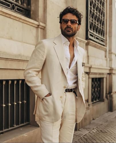 • Fabric type: Beige Linen Suits for Men Made of Linen and Cotton,Which is comfortable, breathable and lightweight.