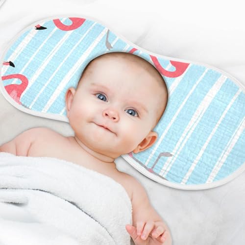 Muslin Burp Cloth for Baby 2PCS Blue Striped Flamingos Pink Super Absorbent Burping Cloths, Bibs for Newborn Boys Girls 6