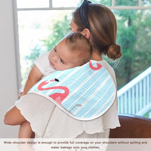 Muslin Burp Cloth for Baby 2PCS Blue Striped Flamingos Pink Super Absorbent Burping Cloths, Bibs for Newborn Boys Girls 4