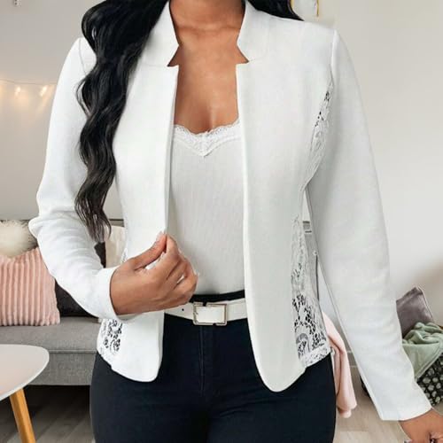 Women's Blazers & Suit Jackets,Autumn Casual Elegant White Contrast Lace Blazer Coat 1