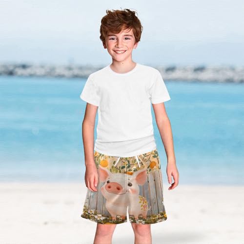 DOMIKING Orange Piggy Beige Boys' Pull On Swim Trunks Quick Dry Boardshorts with Mesh Lining for Kid Boy Toddler M 6