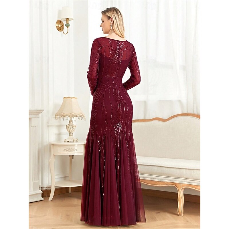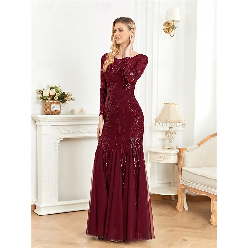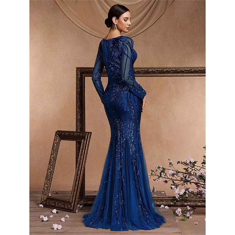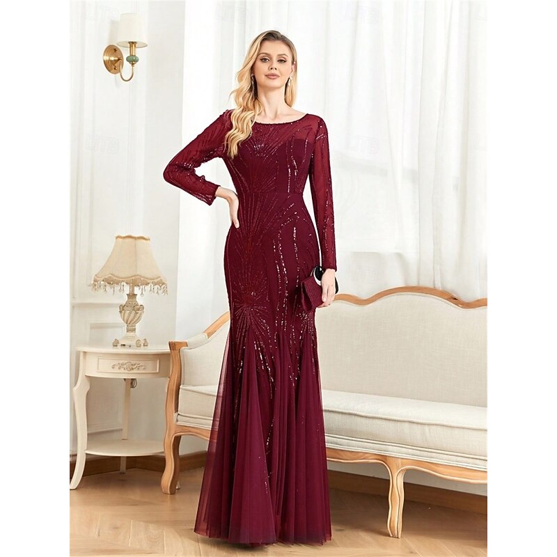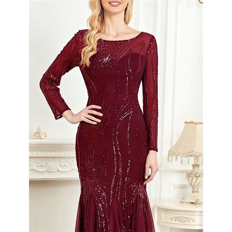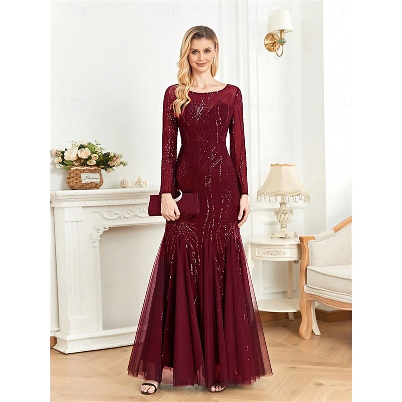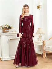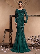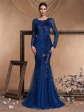 More information about Mermaid / Trumpet Quinceanera Dresses Elegant Dress Formal Wedding Floor Length Long Sleeve Crew Neck Polyester with Sequin