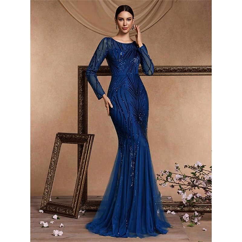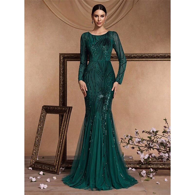 HOT ! Mermaid / Trumpet Quinceanera Dresses Elegant Dress Formal Wedding Floor Length Long Sleeve Crew Neck Polyester with Sequin