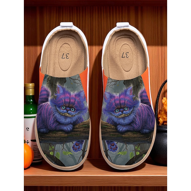HOT ! Women's Halloween Cat Print Travel Shoes – Comfortable Slip-On Casual Flats for Walking & Vacation, Lightweight Witch-Themed Footwear for Fall & Holiday Outfits Vincent Hie