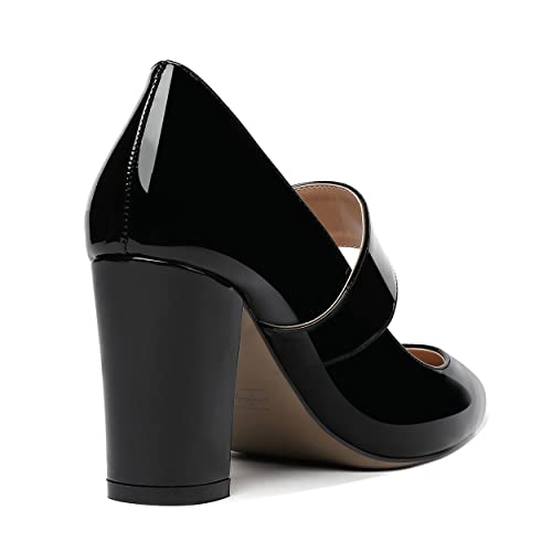 WAYDERNS Women's Pointed Toe Wedding Mary Jane Dress Adjustable Strap Circle Buckle Patent Solid Block High Heel Pumps Shoes 3.3 Inch 3