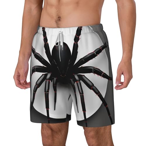 HOT ! Men's Black Spider Print Quick-Dry Mesh Swim Trunks Stretch Lining Beach Shorts Surfing Summer Vacations