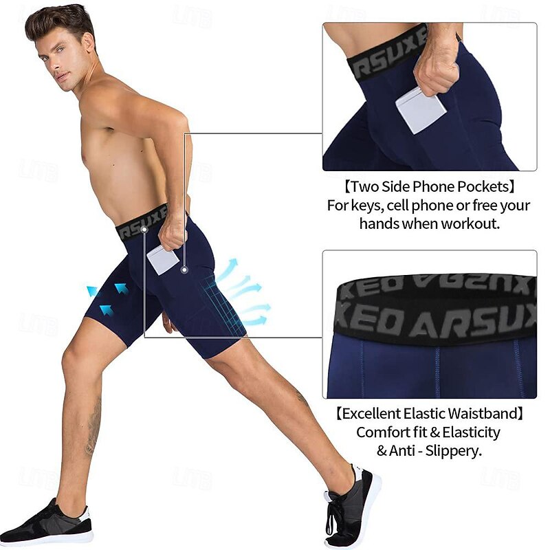 Arsuxeo Men's Running Tight Shorts Compression Shorts Yoga Shorts Spandex Shorts with Phone Pocket High Waist Base Layer Athletic Polyester 4 Way Stretch Breathable Quick Dry Power Flex Yoga Fitness