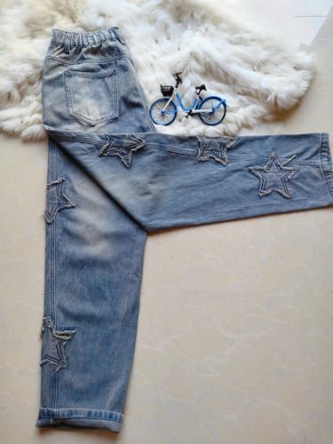 More information about LAPRBY Men's Straight Loose Fit Jeans Star Patch Embroidery Jeans Trendy Denim Pant Designer Long Trouser Streetwear
