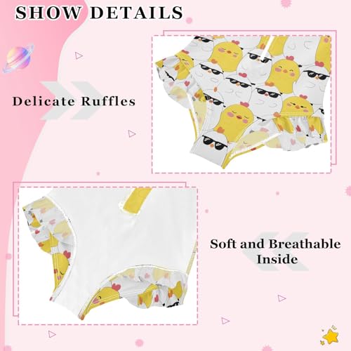 ALAZA Yellow Sunglasses Chicken Girls One Piece Swimsuit Long Sleeve Rash Guard Swimsuits UV 50+ Swimwear Zipper 3