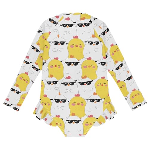 ALAZA Yellow Sunglasses Chicken Girls One Piece Swimsuit Long Sleeve Rash Guard Swimsuits UV 50+ Swimwear Zipper 4