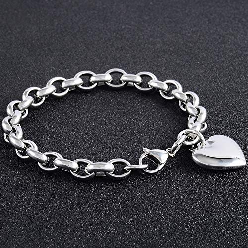 Jewelry Kingdom 1 Heart Charm Bracelet for Women Girls Silver Stainless Steel Chain Adjustable Valentines Day Jewelry Gift (Length of 7-11") 4