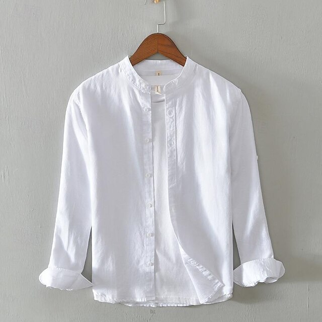More information about Men's Shirt Linen Shirt Casual Shirt Button Up Shirt Cotton Shirt Plain Vacation Hawaiian White Navy Blue Khaki Gray Long Sleeve Grandad Collar Spring Fall Clothing Apparel Button-Down