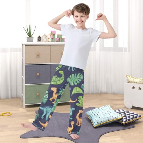 ZZXXB Dinosaurs and Leaves Boys Long Pants Soft Trousers Elastic Waist Kids Lounge Bottoms with Pockets S-XL 1