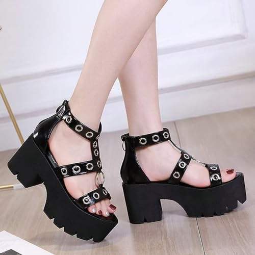 • 【Gladiator Sandals 】: Gothic platform sandals with block high heel and open toe style, which make these shoes match any outfit you wear in your summer daily life, like women dress, jeans, shorts, skirts.