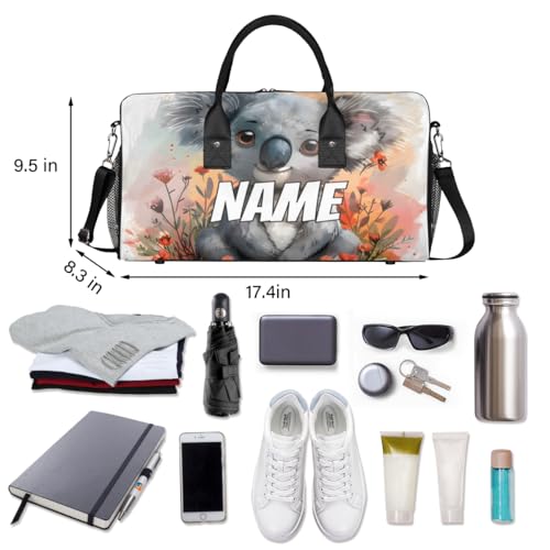 Personalized Cute Koala Travel Duffel Bag with Name, Custom Gym Sport Bag Cartoon Animal Carry On Weekend Overnight Duffel Bag for Men Women 6