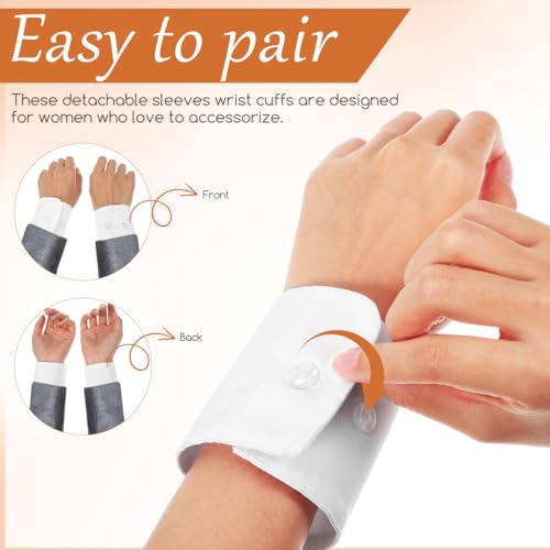 GALPADA 1 Pair Wrist Cuffs for Women Detachable Shirt False Sleeves Fake Hand Sleeves Garment Decorated Accessories for Suit Blouse Coat White 5