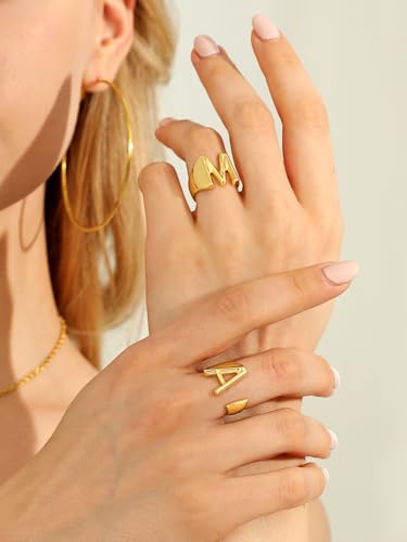 • STATEMENT RINGS: Adjustable open initial ring, trendy and impressive, will definitely be an eye catcher in any occasion. It is perfect for being worn alone or matched with other rings.
