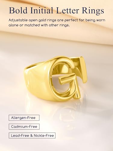 Suplight Nikel Free 18K Gold Plated Letter Rings, Fashion Monogram Jewelry Statement A-Z Wide Name Initial Alphabet Adjustable Open Ring for Women 4
